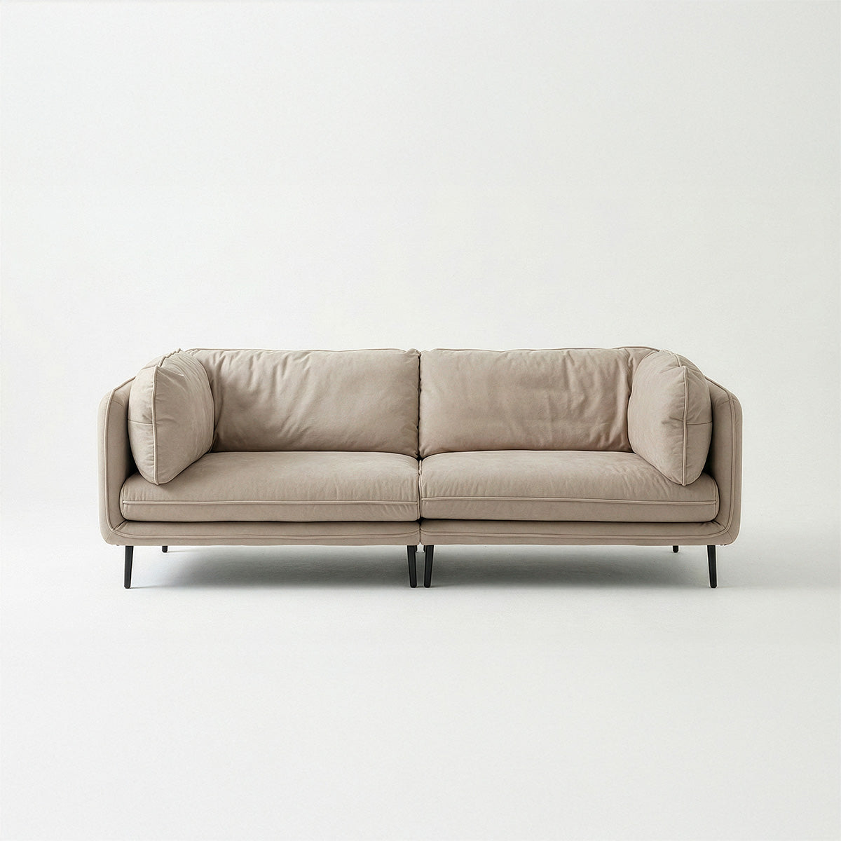 Sofá de diseño contemporáneo con líneas suaves que aportaN calidez a cualquier espacio. Sus cojines amplios y estructura delgada ofrecen un equilibrio perfecto entre comodidad y estilo. Ideal para living modernos que buscan un toque elegante y acogedor.