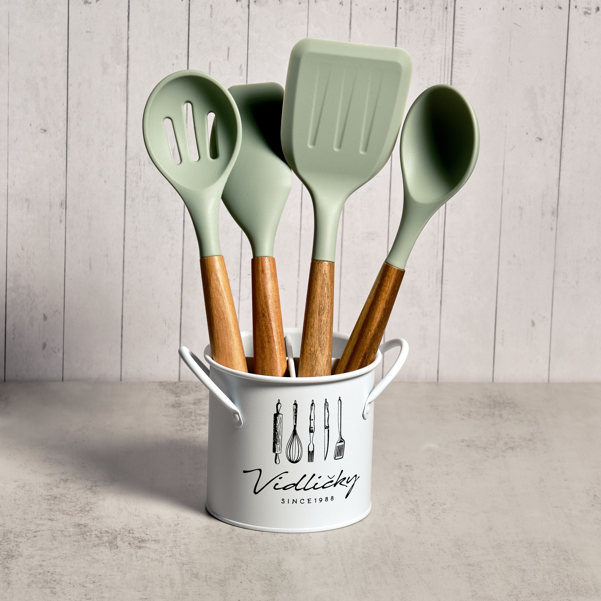 Los utensilios de cocina de madera y silicona combinan comodidad, durabilidad y seguridad. La madera ofrece un agarre cómodo, mientras que la silicona es flexible, antiadherente y resistente al calor, protegiendo las superficies de cocina.