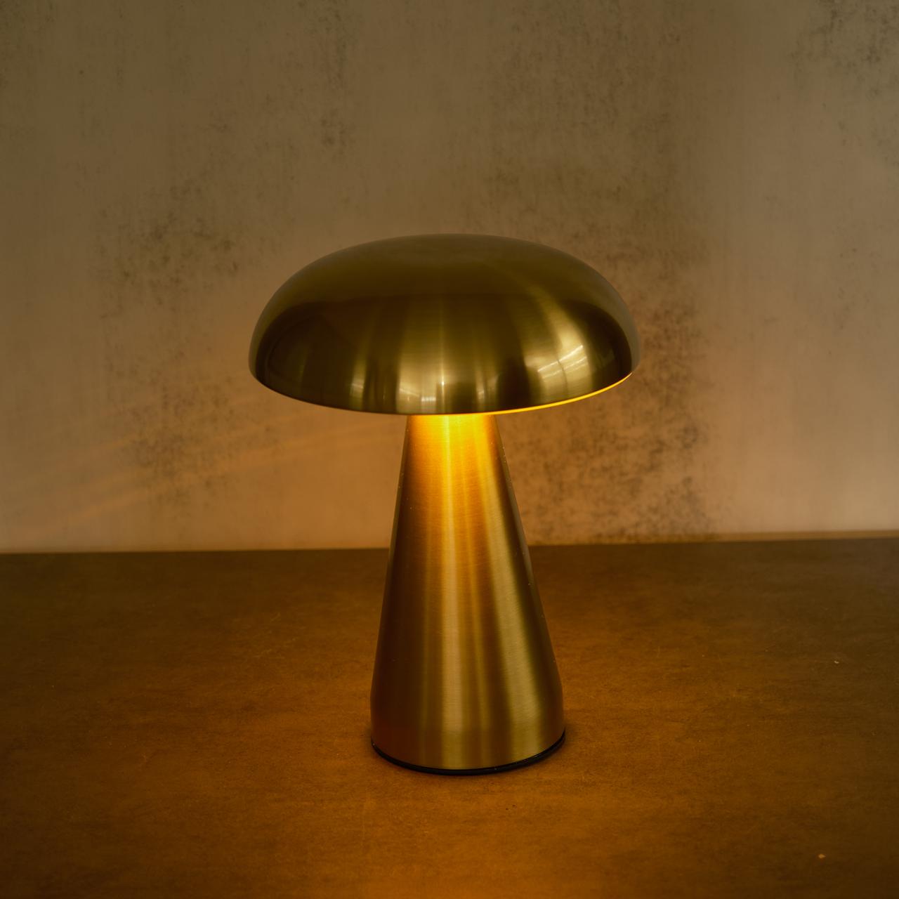 LÁMPARA RECARGABLE HONGO DORADA 15.5X21CM