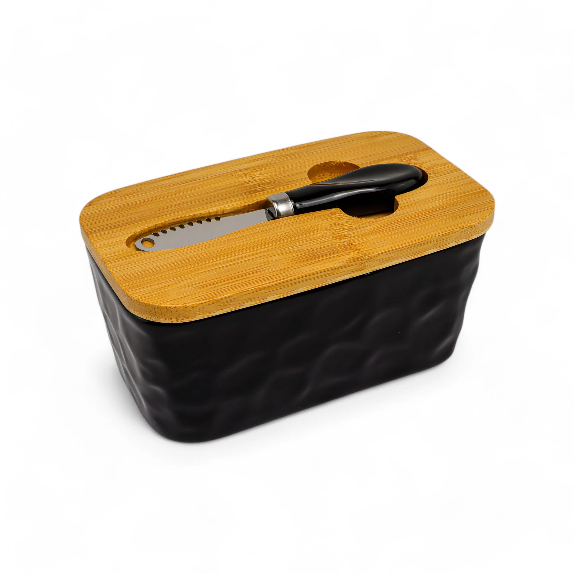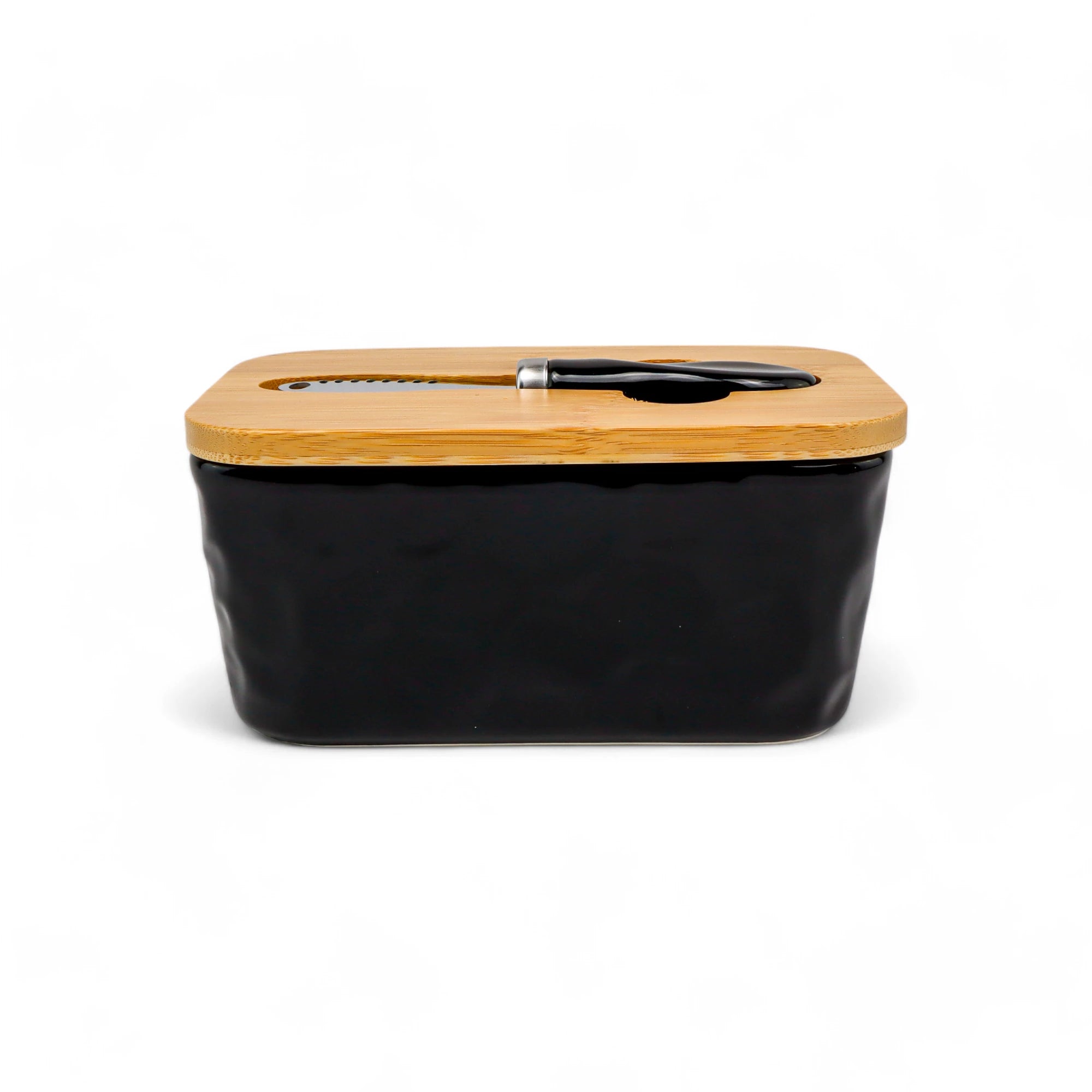 MANTEQUILLERA NEGRA CON TAPA Y CHUCHILLO