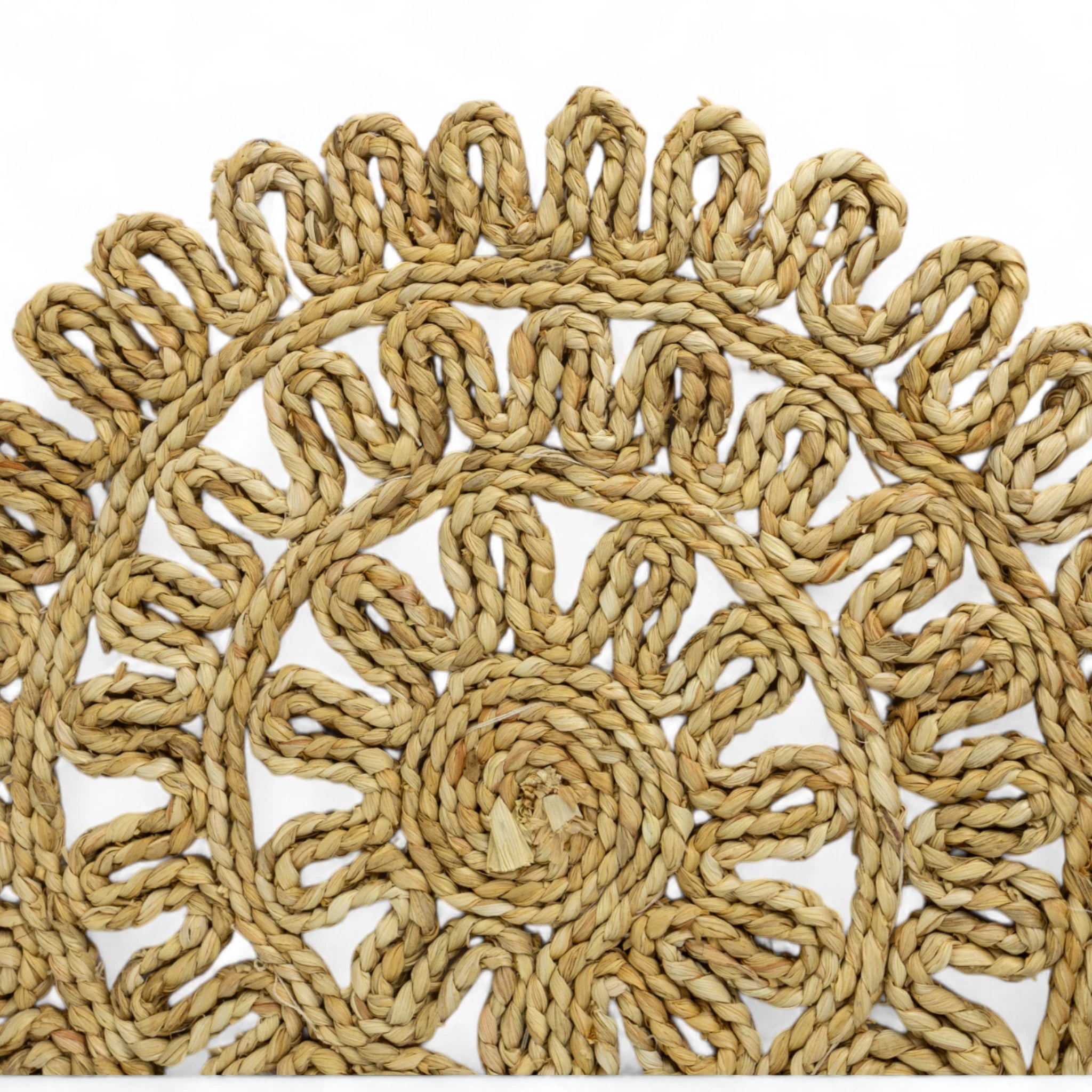 Individual tejido de fibras naturales que ofrece un toque rústico y ecológico a la mesa. Su diseño resistente y duradero lo convierte en una opción ideal para proteger la superficie de la mesa de manchas y calor, mientras agrega un estilo cálido y natural.
