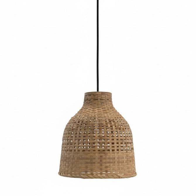 Lámpara colgante de diseño moderno elaborada con estructura tejida en fibra natural. Su forma ondulada crea un efecto visual ligero y elegante, permitiendo que la luz se difunda de manera cálida y acogedora. Ideal para realzar espacios contemporáneos, comedores o salas de estar con un toque artesanal y sofisticado.