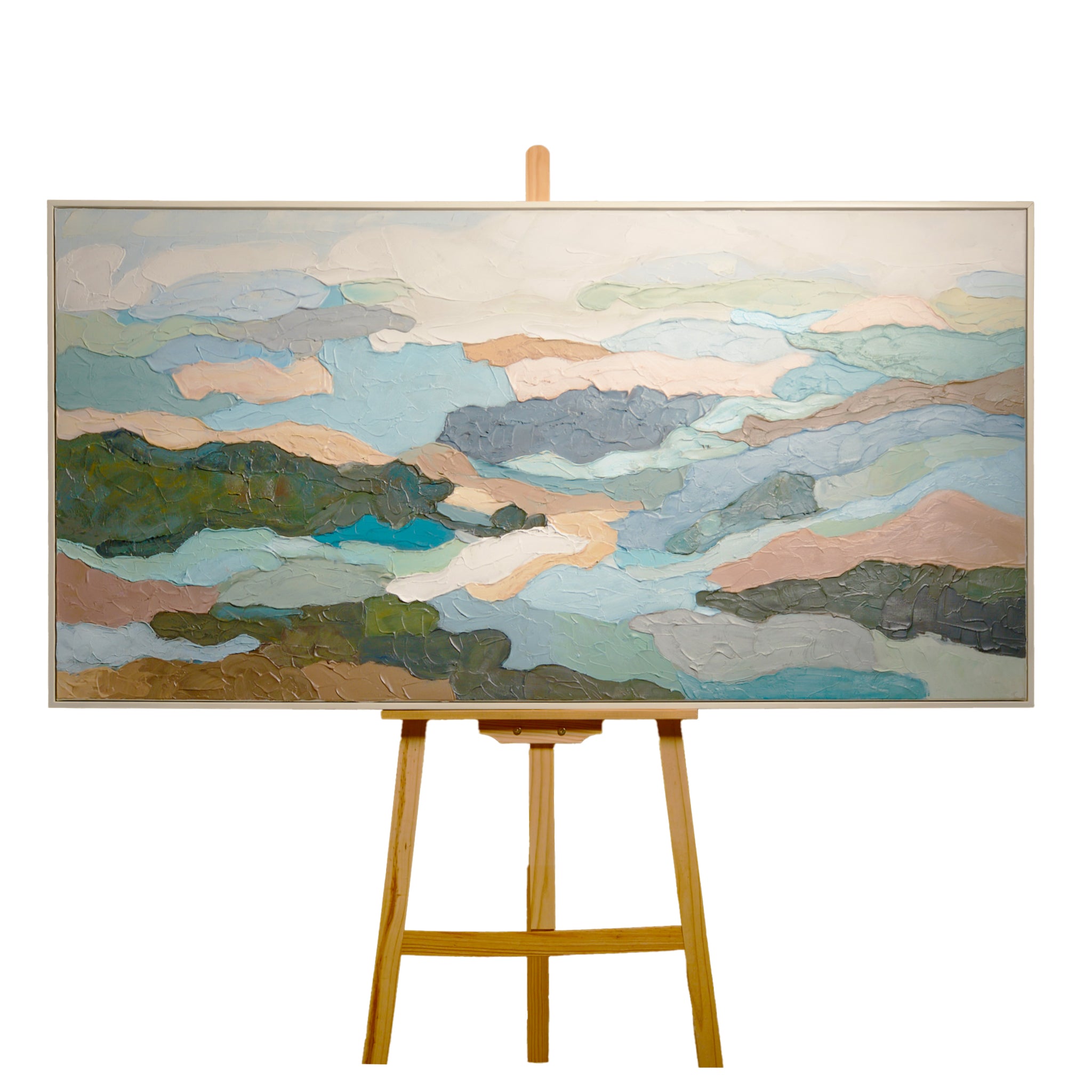 Un cuadro inspirado en la calma de la naturaleza, donde tonos azules y verdes evocan ríos y praderas en armonía. “Campos de agua” transmite frescura y serenidad, ideal para crear un ambiente relajante y lleno de vida.