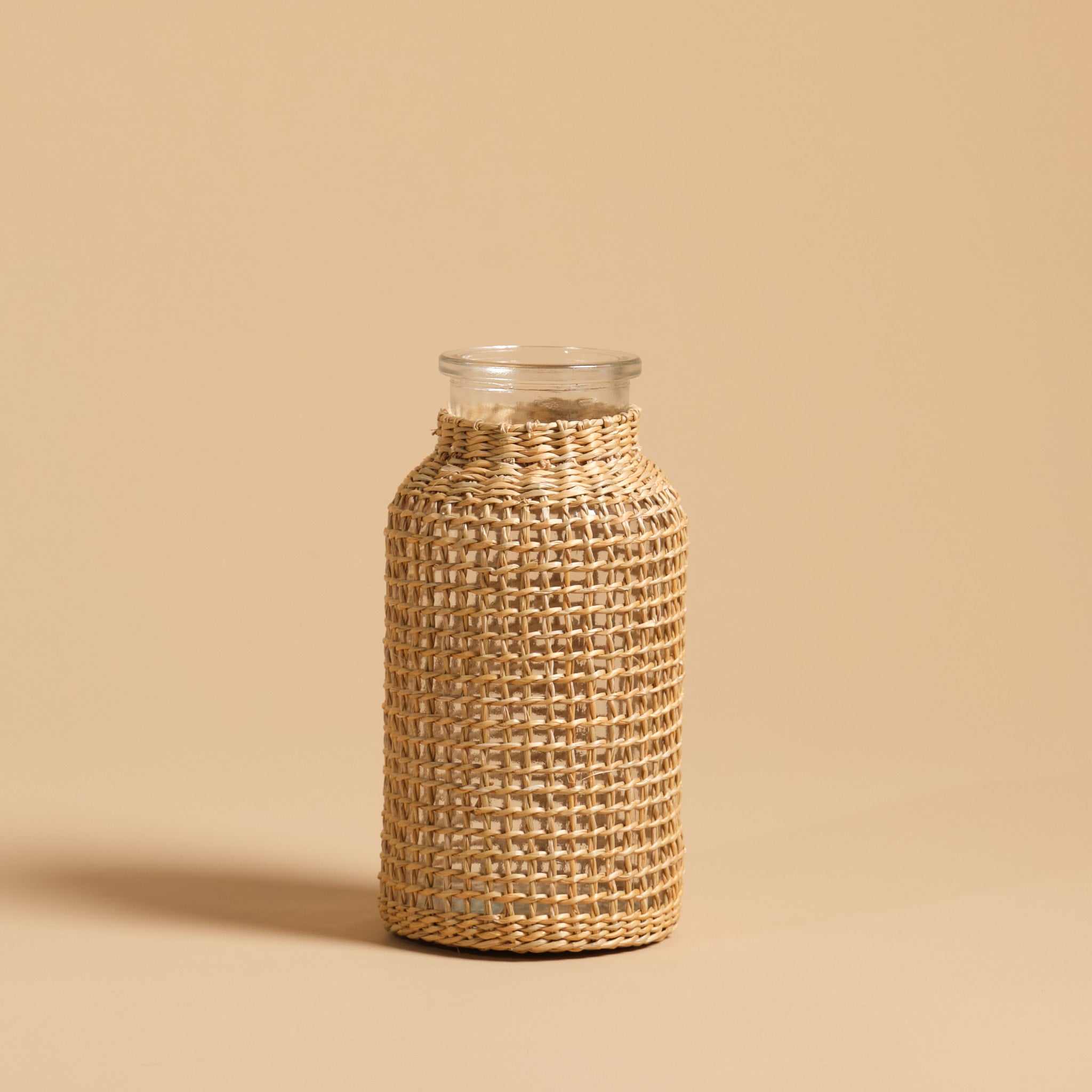 FLORERO VIDRIO CON MALLA NATURAL 16 CM