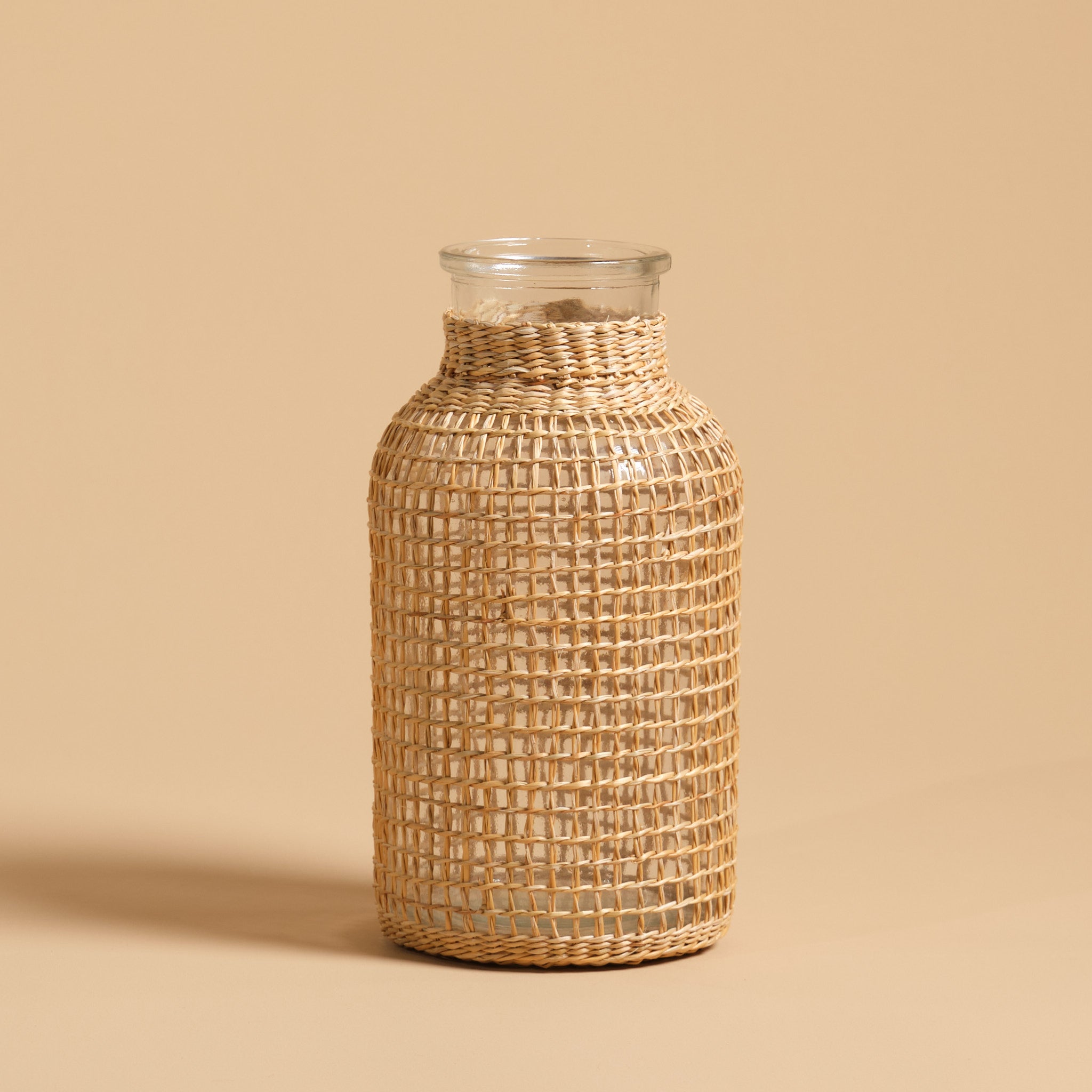 FLORERO VIDRIO CON MALLA NATURAL 20 CM