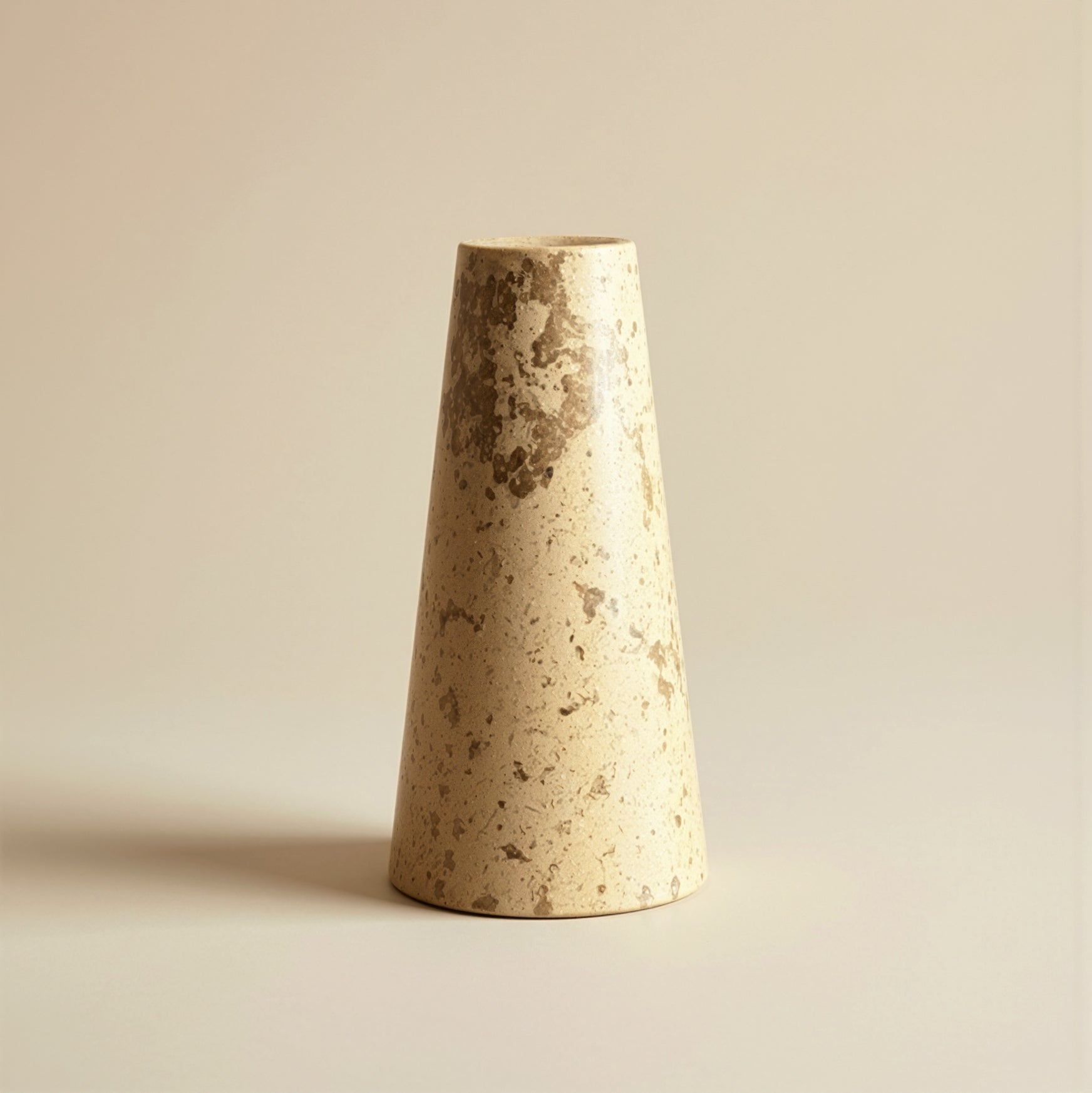 Porta vela con diseño cónico y acabado tipo mármol arena, ideal para aportar un toque elegante y cálido a la decoración. Perfecto para crear ambientes acogedores en cualquier espacio.