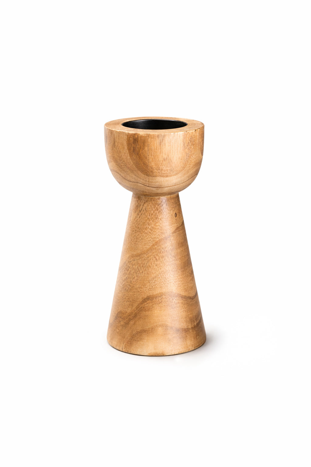 Portavelas de madera de diseño cálido y natural, ideal para aportar un ambiente acogedor a cualquier espacio.